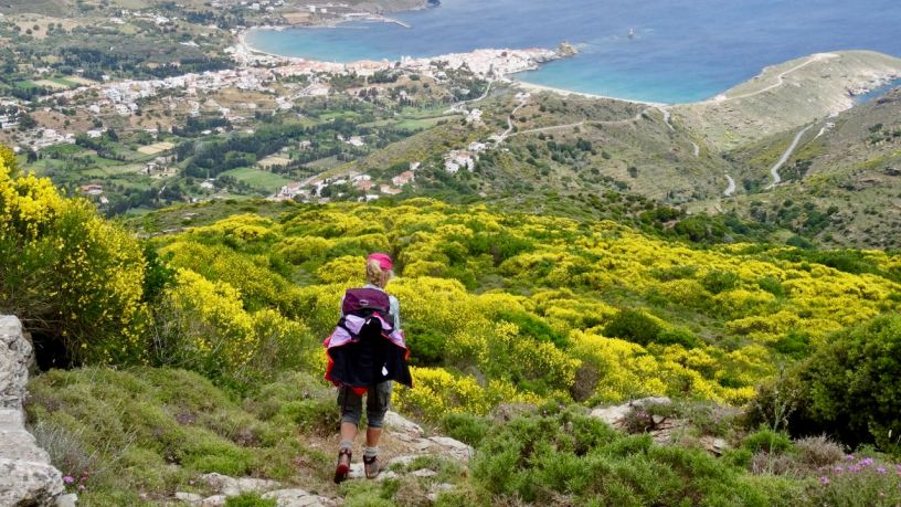 The emergence of Andros as a hiking destination is a very recent development. When we visited in May of 2017, locals told us that the first foreign hikers started showing up about two or three years ago. We still had the trails all to ourselves. In the first two days of the hike we saw literally not a single person. The last three days, we did see a couple of other people who were mostly Dutch folks on self-guided tours organized by SNP. This blog describes how to do the hike on your own, but if you prefer logistical support (ferry bookings, hotel bookings, luggage transport, etc.), SNP seemed like a decent option.