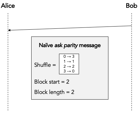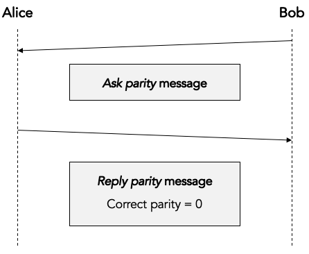 Every time Bob asks Alice to provide the correct parity for a block he sends an ask parity message and then waits for the reply parity response message.