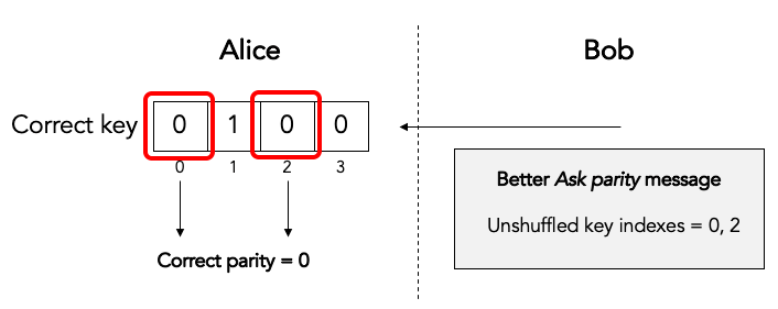 During the reconciliation of a single large key Bob can ask Alice for many parities (hundreds of ask parities for a 10,000 bit key, for example).