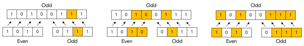 A single Cascade run consists of multiple iterations (these are also known as passes). Different variations of the Cascade protocol use different numbers of iterations. But we start by describing the original version of the Cascade protocol which uses four iterations.