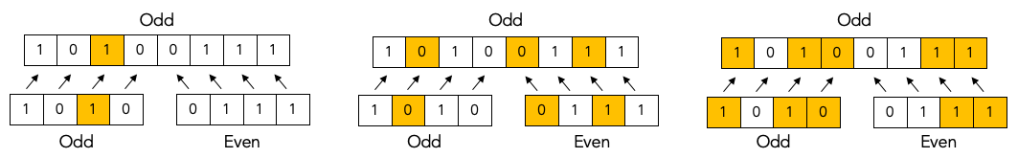 In this particular example, we can see that flipping the red bits in iteration N+1 will cause the blue bits in iteration N to be flipped as a side-effect.