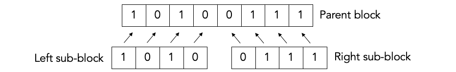 Note: to make things fit on a page the block sizes are extremely small in this diagram. In real life, top-level blocks are much larger. Specifically, we would never see a single-bit top-level block.