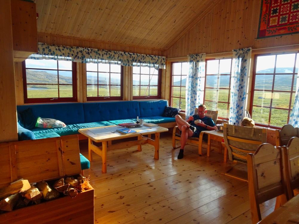 This was another beautiful section which took us extra long since we stopped many times to eat the delicious cloudberries along the way. Most of it is easy and almost flat, but the last section towards the Daertahytta is quite rocky and long, and since it had started to rain it took us more than a couple of hours to navigate this approximately 6 km stretch. The big hut at Daertahytta is brand new and almost looks more like 5 star accommodation than a mountain hut!