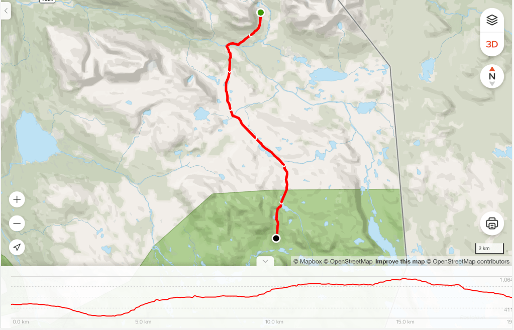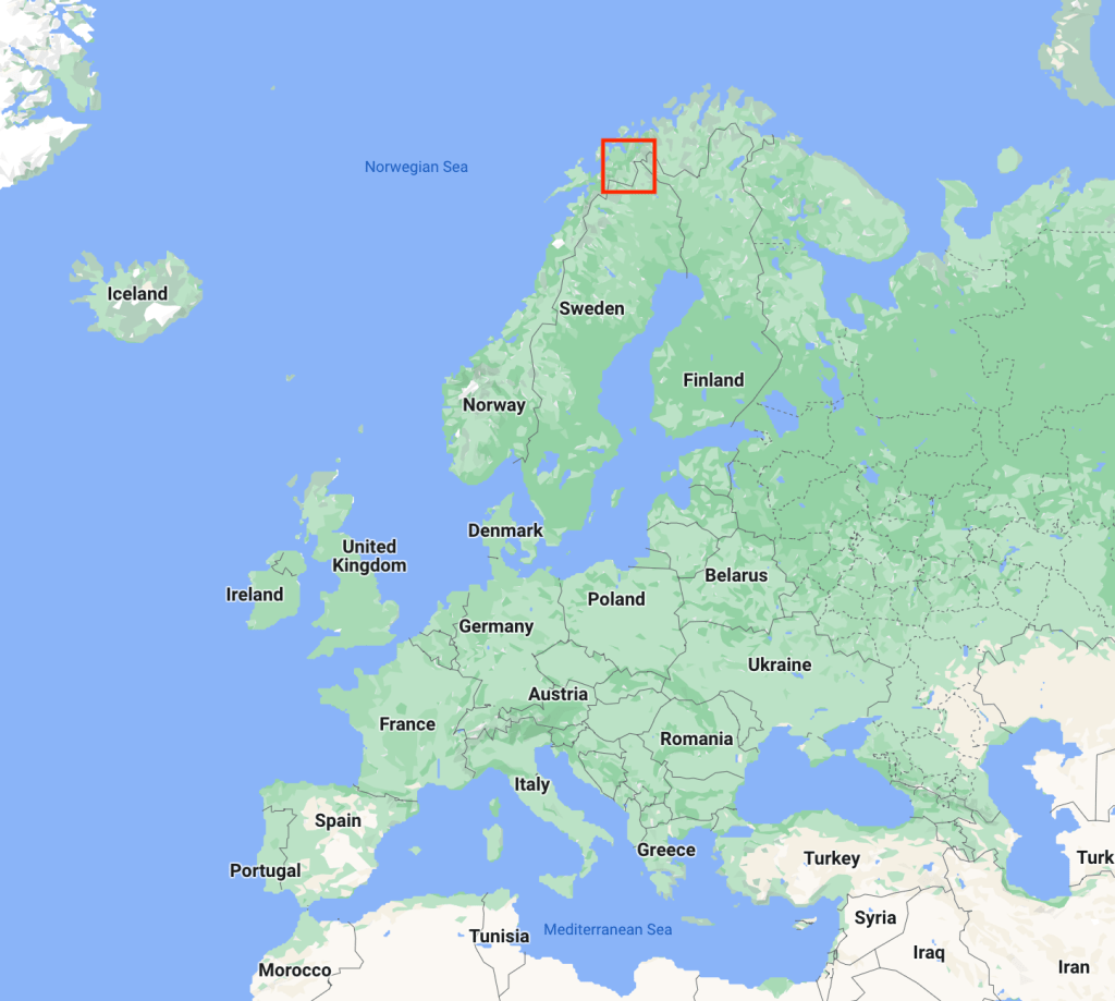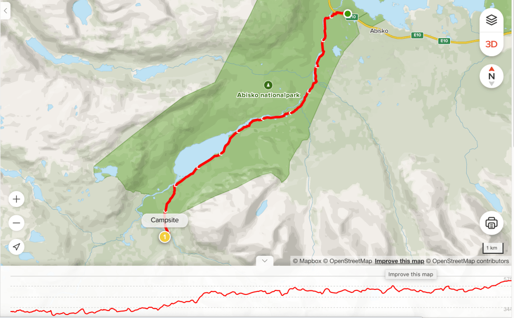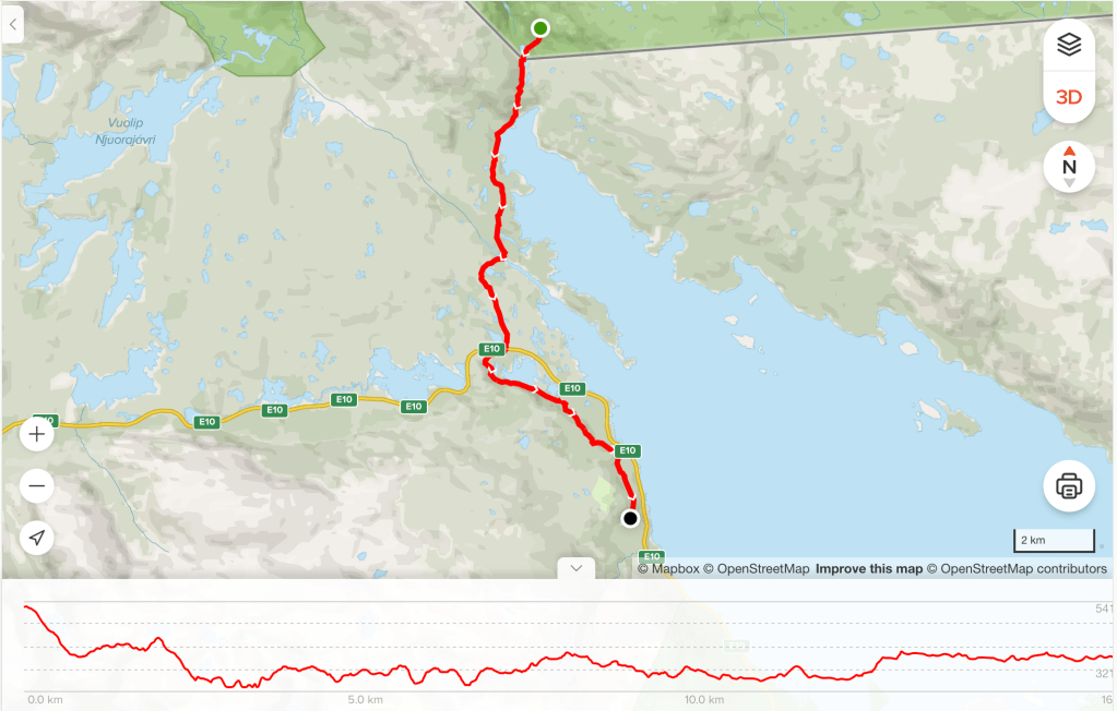 Camping spot location: Lat: 68.960966 Lon: 20.081591
