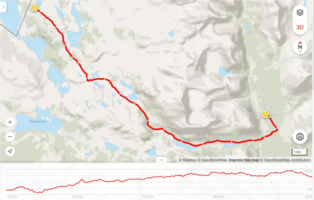 In the second half of August 2022, we hiked a roughly 300 km section of the Nordkalottruta. Originally we planned to hike Southbound from Kilpisjärvi in Finland to Ritsem in Sweden. However, once we reached Gautelishytta we changed plan and hiked out via Katterat to avoid flooded trails between Røysvatn and Ritsem and to deal with a foot injury.