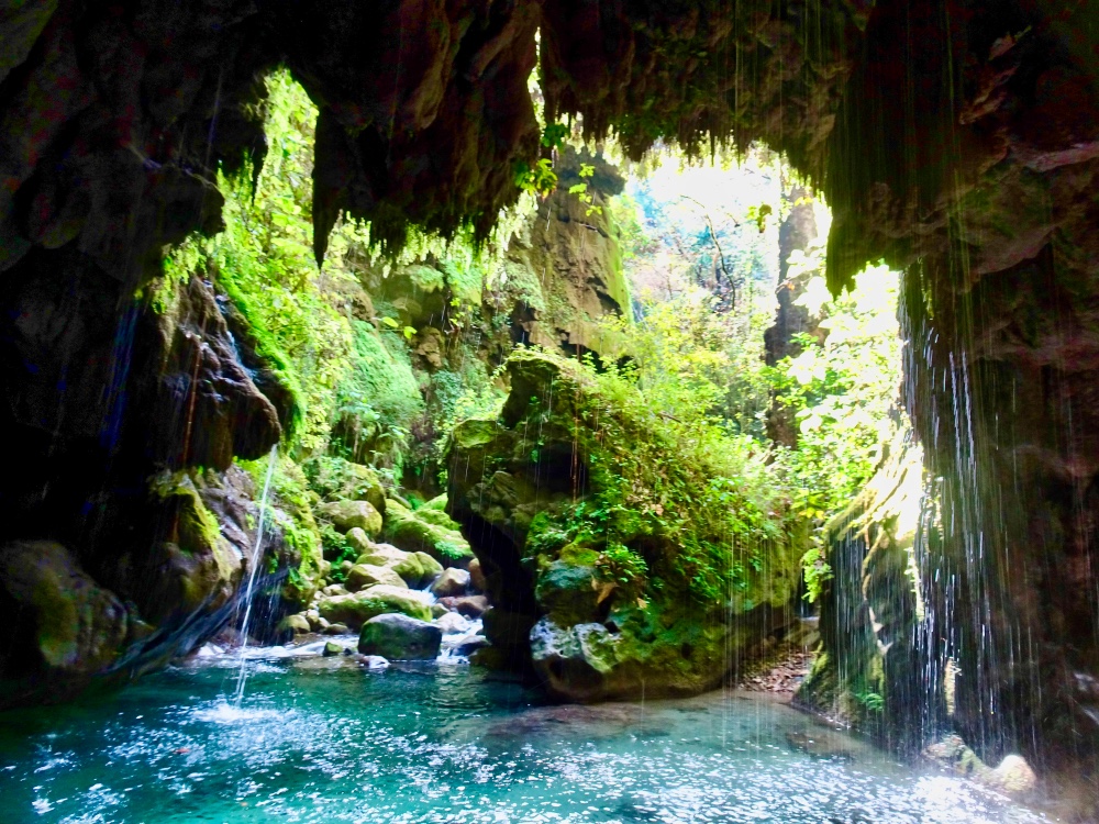 Puente de Dios is a very scenic river passing through a natural rock bridge formation, where it it is fed by waterfalls appearing out of nothing from underground rivers. It’s a 30 minute walk through a lush tropical canyon.