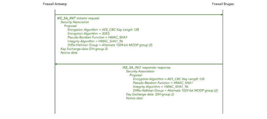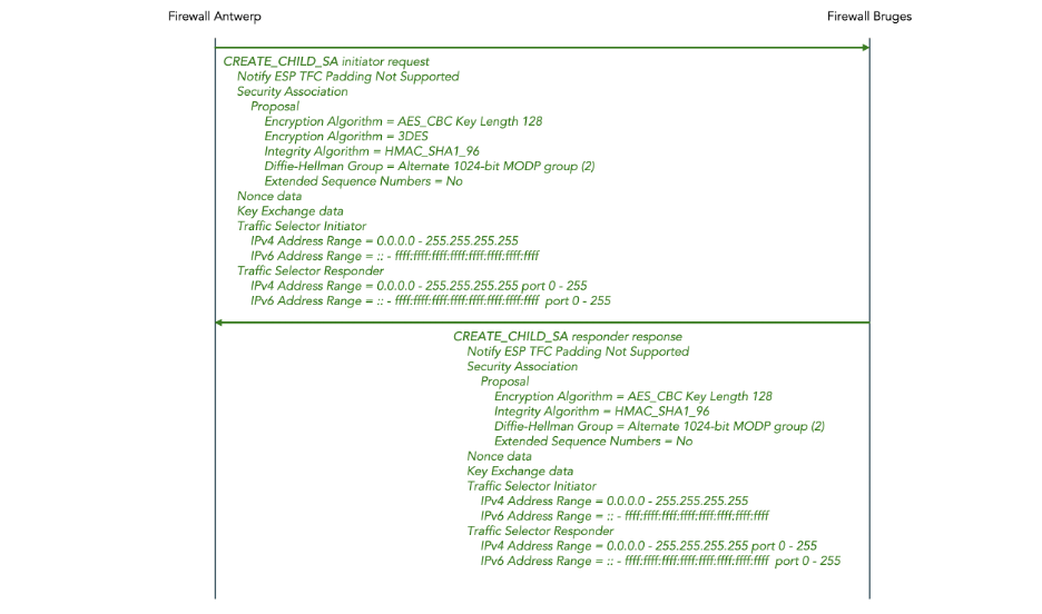 - The symmetric encryption protocol, for example the Triple Data Encryption Standard (3DES) or the Advanced Encryption Standard (AES). This includes the protocol mode, for example AES Cipher Block Chaining (AES-CBC) or AES Galois / Counter Mode (AES-GCM).