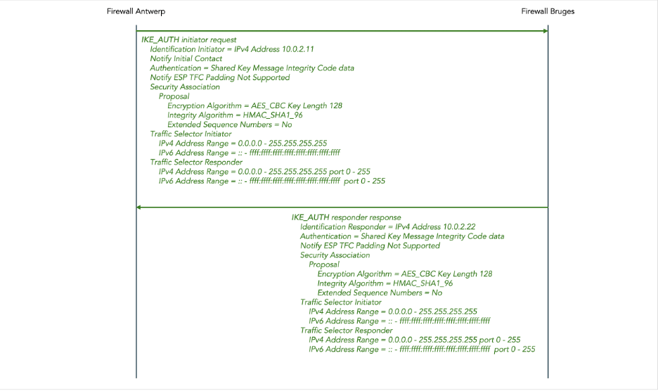 - Configure the two firewalls to create a traditional IPsec tunnel between the two gateways.