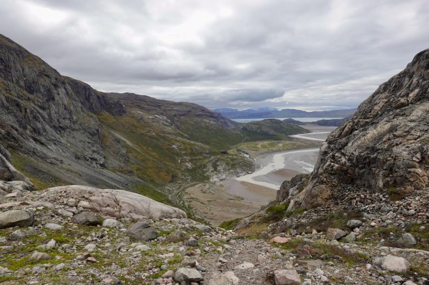 We followed a clear trail South-West and soon reached the point where the trail descends back down into the valley and the final few kilometers back to Narsarsuaq.