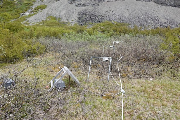 Shortly after the flower valley, the trail changes into a gravel road that crosses a last small hump. You will pass some experiments left behind by climate scientists. Soon after the gravel road changes into a real tarmac road, and the last few kilometers into town are a bit of a boring slog.