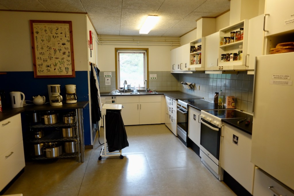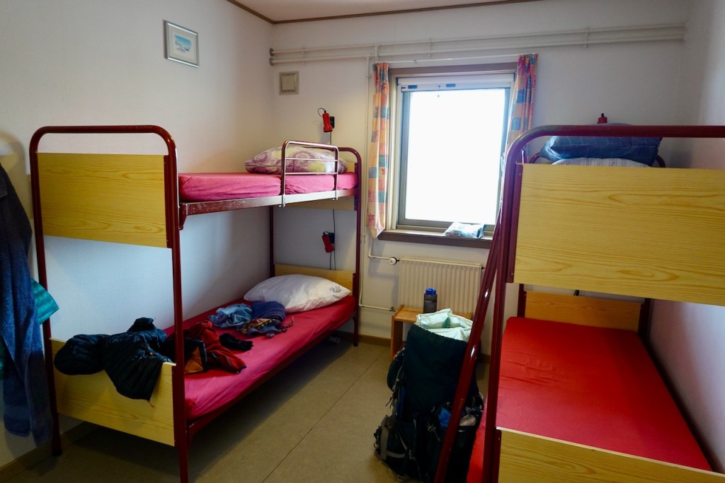 We spent one night after the hike in the hostel, which is a couple of hundred meters inland along the road from the airport. It has multiple rooms, each with two bunk beds (four people per room). The facilities are very clean and good. There are clean shared toilets and shared showers with strong hot water and paid laundry washing machines. There is a large well-equipped kitchen for self-catering (there is a well-stocked Pilersuisoq supermarket on the opposite side of town). And there is a large and comfortable living room with dining tables and seating areas with lots of information.