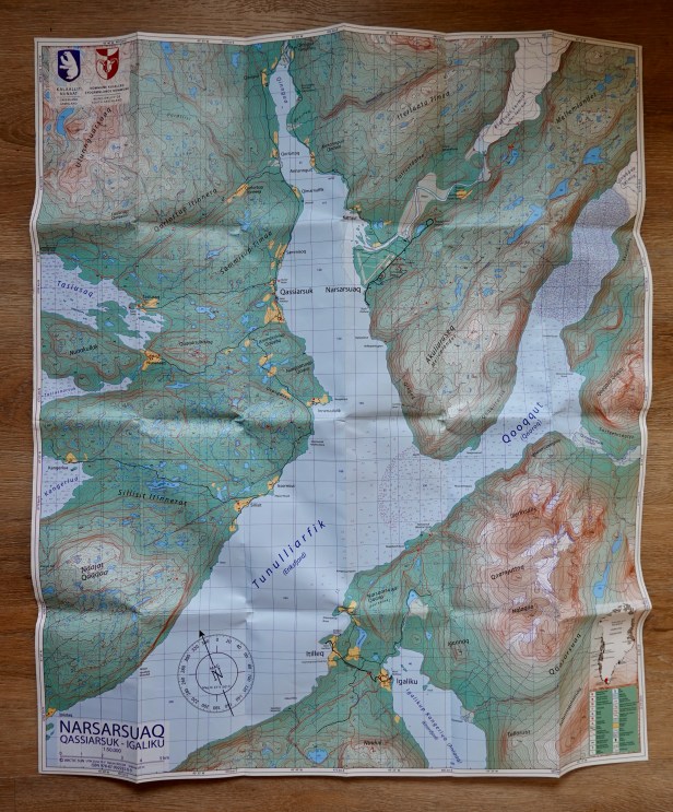 - Arctic Sub map Narsarsuaq (Qassiarsuk – Igaliku). ISBN 978-87-992925-0-9 covers the area in excellent detail. We purchased this map at cafe Thorhildur in Qassiarsuk (which is run by Elna from Sillisit sheep farm).
