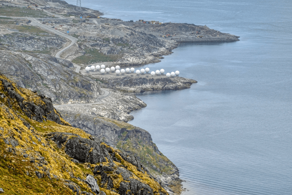 It only took us a few hours of easy hiking through the granite mountains with a few minor ups and downs to reach the satellite antenna field next to the Nuuk airport.